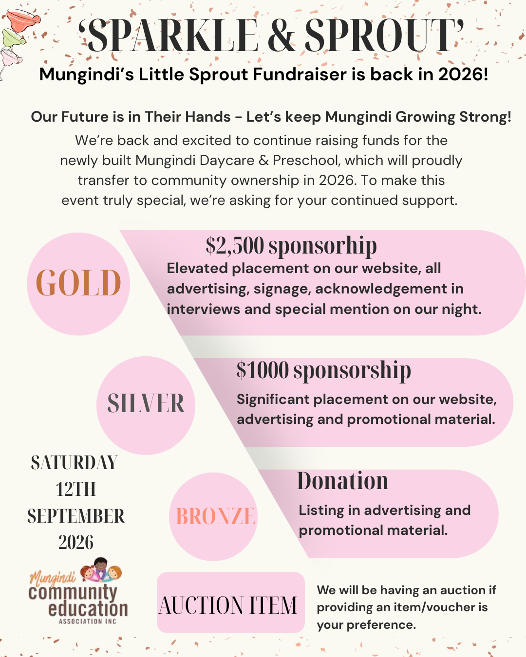 Our next major fundraiser will be held on Saturday 12th September 2026. Book it in!